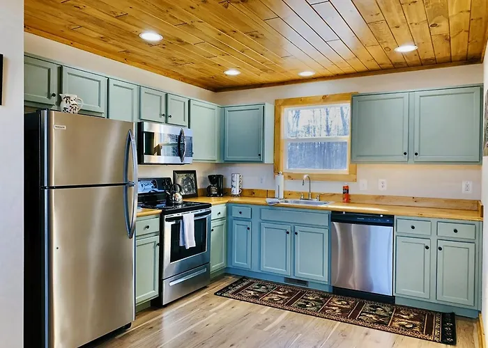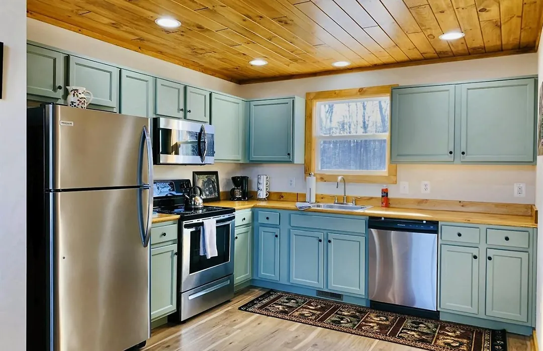 Oak Tree Cabin Near The Shenandoah River has an equipped kitchenette provided with amenities, such as a refrigerator, an oven, and kitchenware for self-catering.